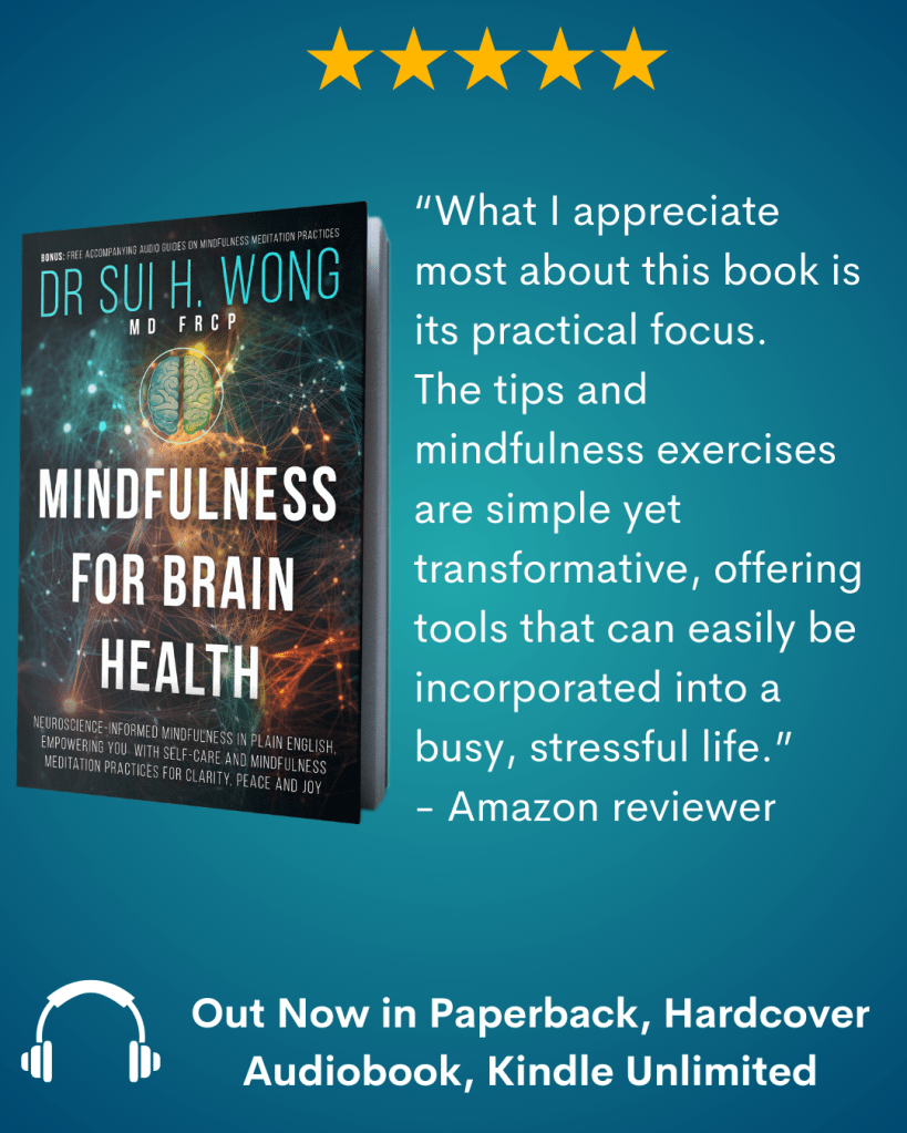 PS – In my book Mindfulness for Brain Health, I share practical mindfulness practices you can integrate into your daily life – to create mindful moments throughout your day 😊 The book includes FREE guided practices to help you get started.